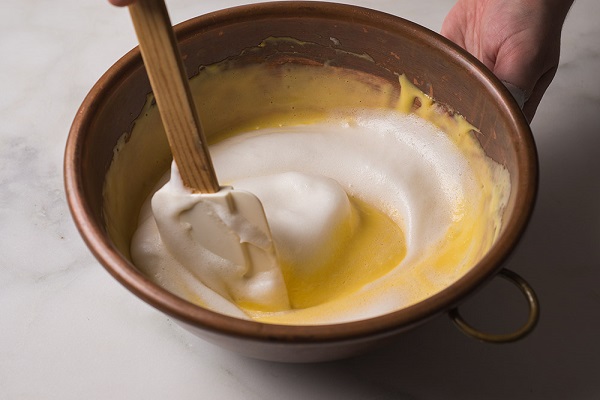 Fold lòng trắng trứng đánh bông với các nguyên liệu khác. Ảnh:internet