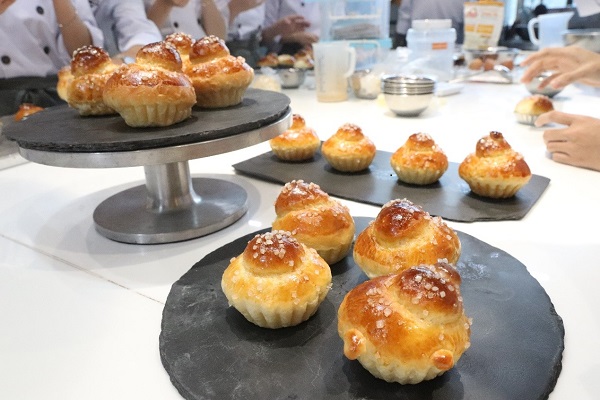 Các mẻ bánh lần lượt được đem đi nướng. Ở bước cuối cùng, giảng viên hướng dẫn các bạn sử dụng lò nướng và cung cấp thêm các kiến thức về điều chỉnh nhiệt độ và thời gian nướng phù hợp cho mỗi loại bánh. Các bạn sinh viên chăm chút quan sát lò nướng để nhìn thấy thay đổi của những khối bột thành những ổ bánh mì hoàn chỉnh. Sau khoảng 30 phút thì những chiếc bánh mì Baguette có lớp vỏ dày, giòn cứng, ruột ấm đặc, hơi dai và có nhiều lỗ khí; những chiếc bánh mì Brioche có vỏ ngoài vàng nâu sậm, ruột bánh có màu vàng của bơ, mềm, xốp, nhẹ và thớ bánh dai mịn cũng được ra lò, thơm lừng cả không gian lớp học.